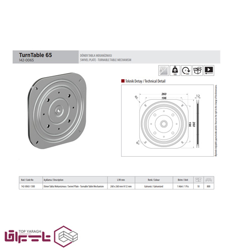 زاویه چرخش صفحه گردان آلباتور Albatur کد 1420065 ، 360 درجه است و به دلیل فلزی بودن نسبت به صفحه گردان های پلاستیکی از دوام و مقاومت بیشتری برخوردار است.