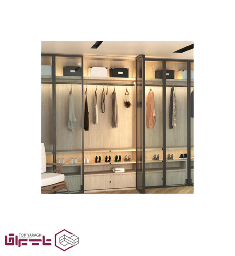 مکانیزم درب تاشو آکاردئونی دو درب شیشه ای با پروفیل آلومینیوم فانتونی fantoni کد K016